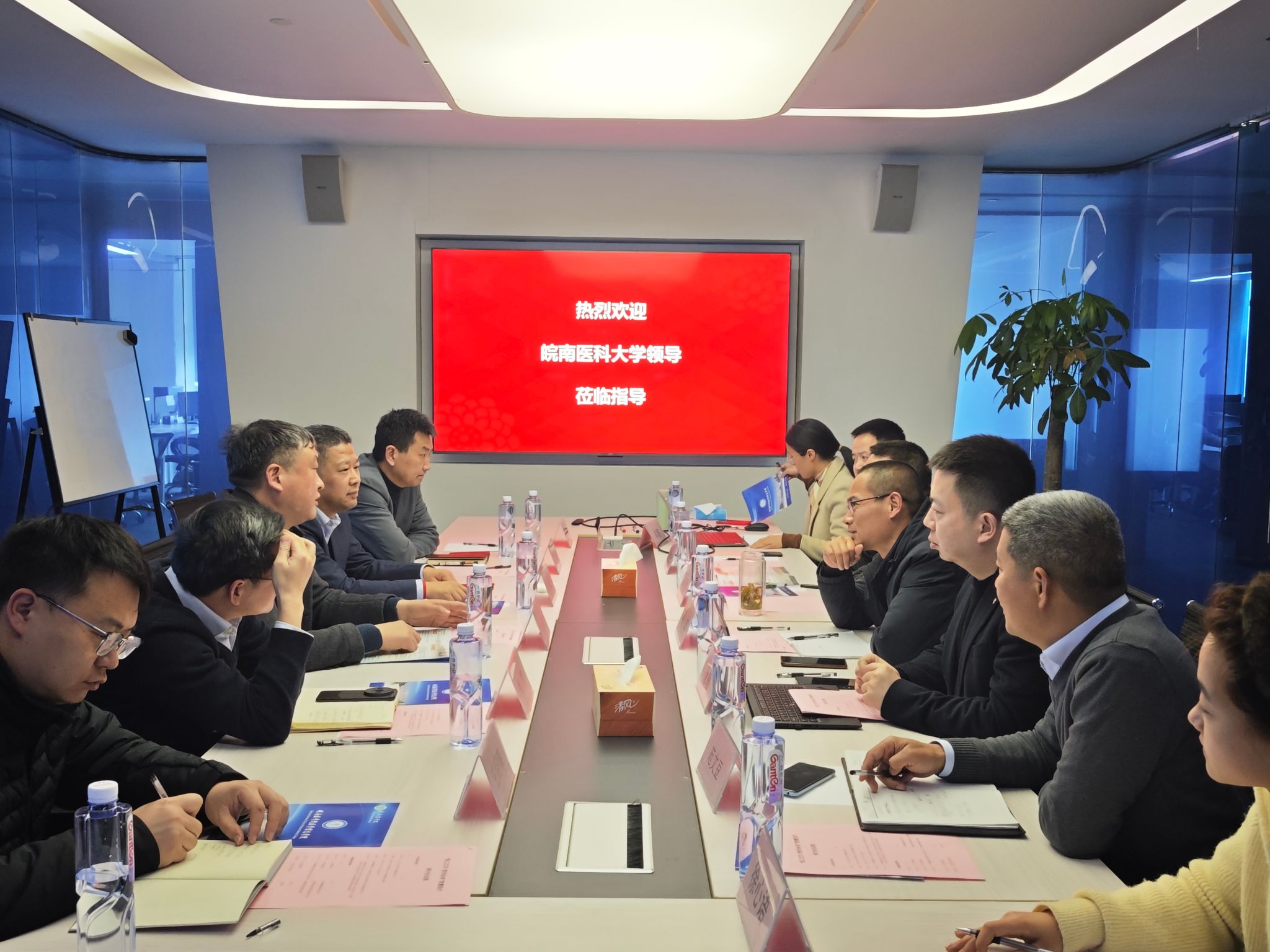 口腔医学院、医学信息学院、第一附属医院、第二附属医院相关负责人及科研处产创中心同志陪同走访。(刘卉/文、摄)